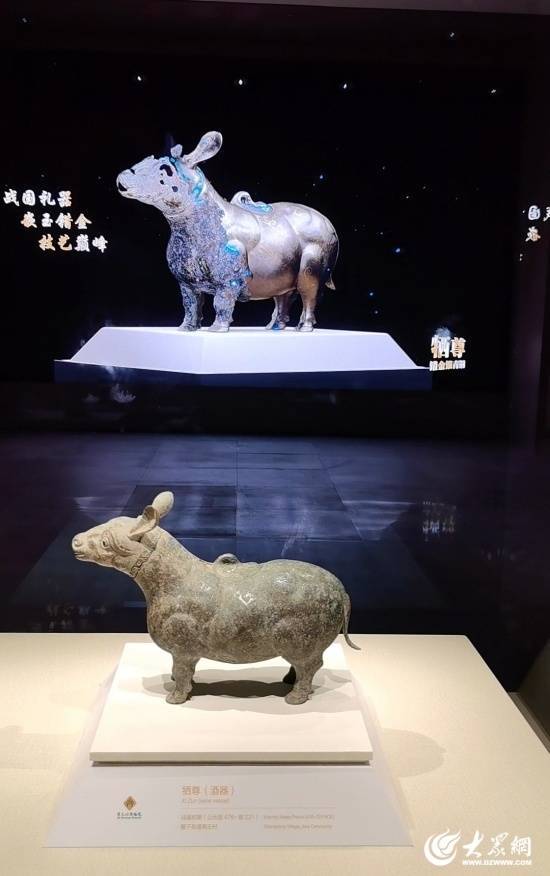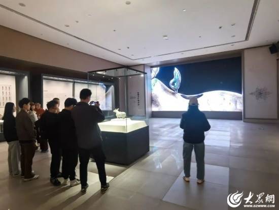 在“泱泱齐风”第三展厅记者看到,牺尊展区,全新的低反射展柜搭配柔和专业的灯光,将这件镇馆之宝的错金云纹、绿松石镶嵌等细节清晰呈现,巨幕投影生动还原了牺尊的铸造工艺与使用场景,让千年国宝“活”了起来。不少游客驻足细看、拍照留念,沉浸式感受齐国青铜文化的巅峰水准。